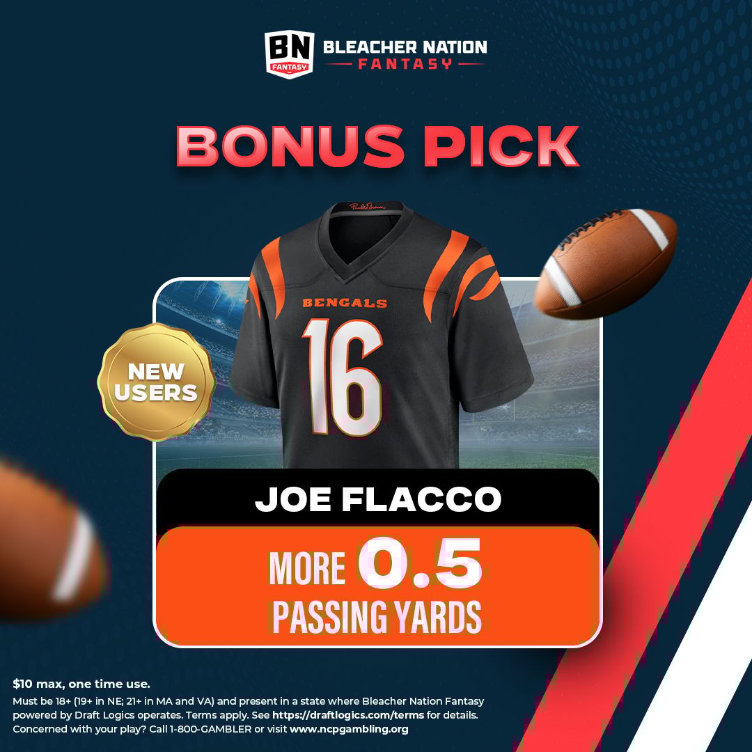 Another Thursday Night Football game, another bonus square from Bleacher Nation Fantasy! New users at Bleacher Nation Fantasy can grab tonight’s free square —> Joe Flacco MORE than 0.5 rushing yards.