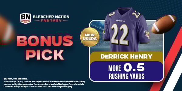 Another Thursday Night Football game, another bonus square from Bleacher Nation Fantasy! New users at Bleacher Nation Fantasy can grab tonight’s free square —> King Henry MORE than 0.5 rushing yards.
