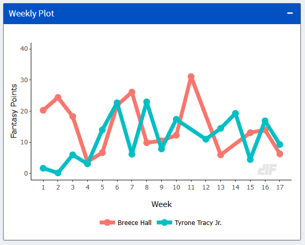 We mentioned Tyrone Tracy Jr returning to relevance. It wasn’t too awfully long ago that he was a reliable fantasy asset. Oh, wait, that was last season. Tracy started slowly due to the aforementioned Devin Singletary. Once he took over, the youngster was more than serviceable.